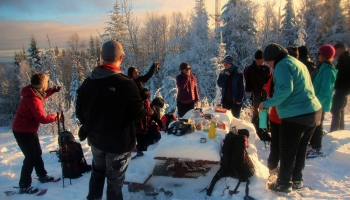 December 25, 2018 It was another great turn out for the Christmas Day snowshoe. Clear skies provided spectacular views from the top of Pilot Mountain.
