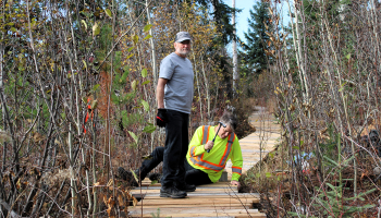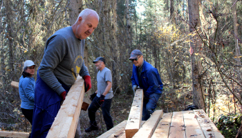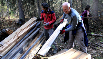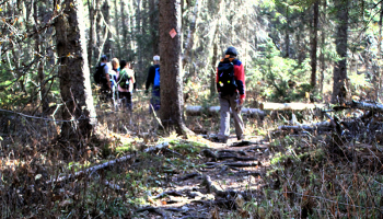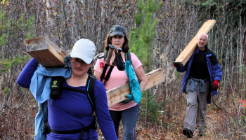 Ten people participated in this work hike, with most of them packing 2x8s to a second drop off point along the trail for installation of more plankway (likely next Spring). We also continued on to the river which was eerily low for this time of year.
