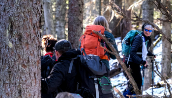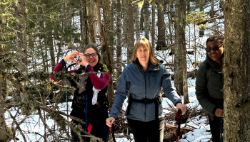 Sixteen Ramblers showed up to follow leader Rita along the various trails in Pidherny. They hiked Pappa Woods, Ridge Trail, and Northern Lights for a total of 8 km. The trails were in pretty good condition and they only needed spikes to navigate the icy patches, and climb over one blowdown.