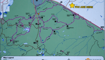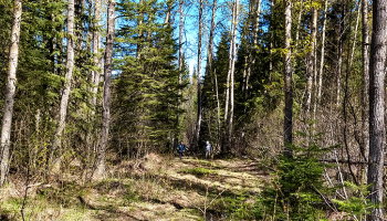 Our lunch stop was the popular Troll Lake cabin. With such a nice breeze, the bugs stayed away, and the temperature was perfect under a clear sky. We then headed to the "hydro" road and jumped back on the trail to Ilse's Inn, down Hickory Wing and finally to the pull out on Hwy 16. Roughly we covered 11 km.
