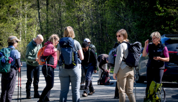 Thirteen ladies followed Richard thru the trails on Tabor Mountain. The trails were snow free, not so much mud free, or bug free. Yes, the bugs have hatched, mostly mosquitos and small flies, they did not seem to be biting all that much, just annoying.