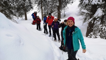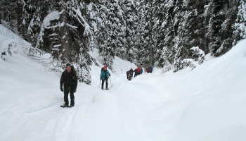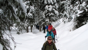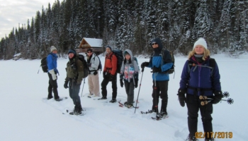 Sixteen individuals came out on the Wells long weekend snowshoe. On the first day, we did a 5 km snowshoe around the meadow and up Cornish Mountain. On Saturday, we did a 10 km snowshoe to Murray Cabin on the Yellowhawk Trail. Sunday we snowshoed 15 km on Bowron Lake. That evening, seven of us went tubing in Barkerville. On Monday we explored Barkerville and a few of us participated in the sled race and the egg run. It was a great weekend. Thanks to everyone who participated and made it such a great event!